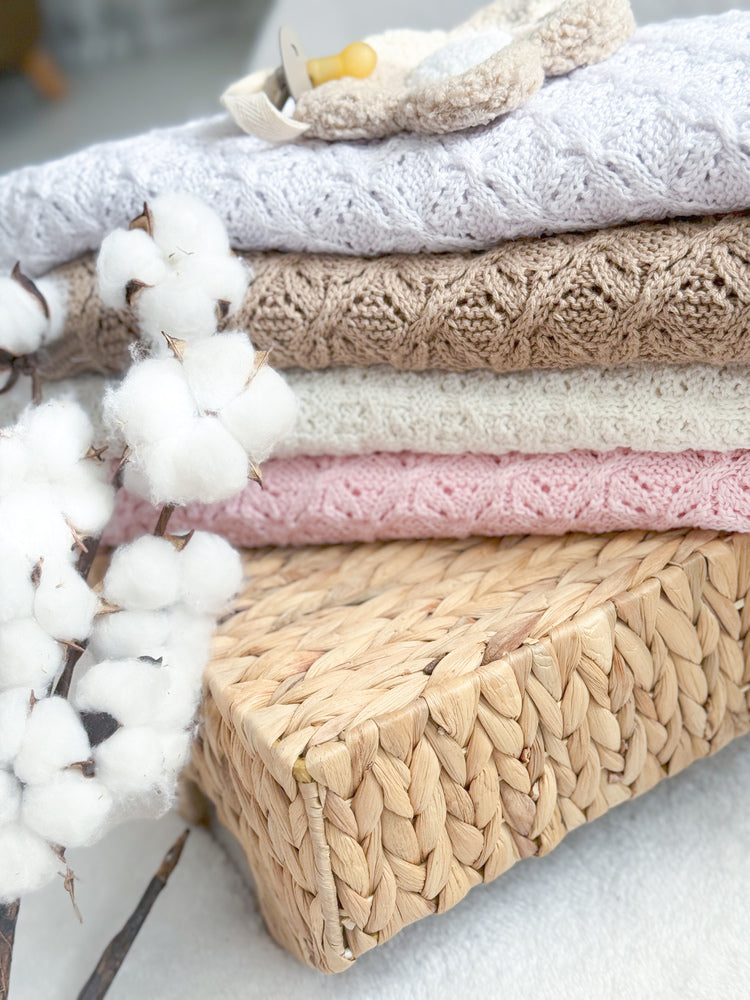 Yumuşacık dokusuyla bebeğinizin tenine nazikçe dokunan triko battaniyemiz, hem evde hem dışarıda kullanım için ideal.